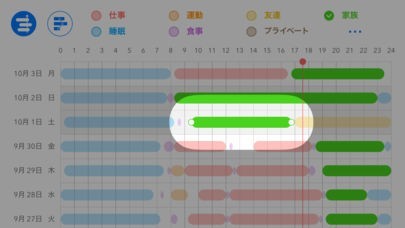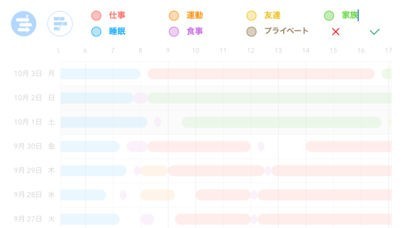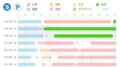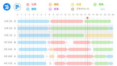 自分の毎日の行動を時系列で客観的に振り返れて、時間の使い方を見直すきっかけになります。