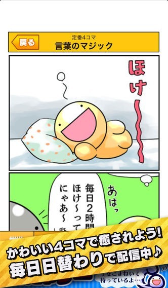 App Storeより引用ふしぎな生き物「ふにゃもらけ」のほのぼの4コマまんが。
