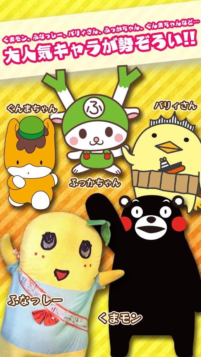 くまモン、ふなっしー、バリィさん、ぐんまちゃん、ふっかちゃん、など人気キャラが全76キャラも出演。