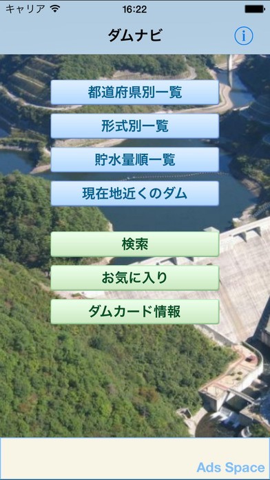 このアプリでは、日本中のダムに関する情報が揃っているので、お近くのものならば「都道府県一覧」をタップすることによって調べることが出来ます。 ほかにも近くのダムからも調べることが出来て、水系名、河川名、形式、目的、堤高などといったダム好きにはたまらない情報がすべて記載されているので、見る際の参考にすることが出来ます。 特に、形式は一覧でも見ることができ、アスファルトフェイシングダム、フローティングゲートダムなどといったものを見るためにはどこに行けばいいのかなどといった調べ方もできます。 また、ランキング形式で貯水量が多い順などの情報も閲覧することも出来ます。 それ以外にも現在地に近いものを検索することができたり、コレクション要素があるダムカードに関する情報まで得ることができるので役に立ちます。