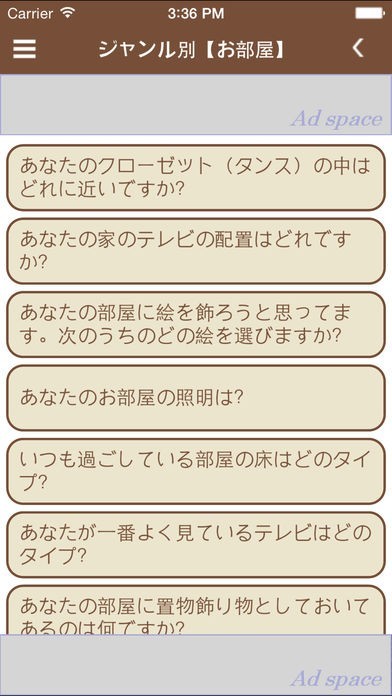 家具の配置や窓の位置、あなたの行動心理などをこのアプリでチェックしましょう。あなたによい運気が近づいているか、はたまた遠ざけてしまっていないかがバッチリ分かります。テスト結果を読めば、運気を向上させる方法も分かります。