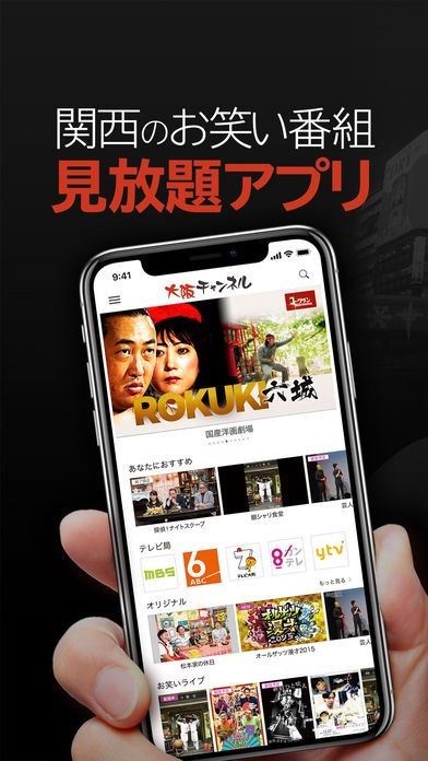 関西地方でテレビ放送されたバラエティ番組などが見られる「大阪チャンネル/お笑い・エンタメ番組が見放題」は、お笑いに関する映像が取り揃えられたテレビアプリです。テレビ番組だけではなく、お笑いライブの劇場公演なども多数配信。番組検索機能なども搭載しており、お気に入りの芸人の活動を追いかけることもできます。