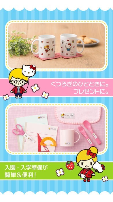 ・ハローキティ、マイメロディ、リトルツインスターズ、シナモロール、ポムポムプリン、ザ ラナバウツの商品がつくれるよ!