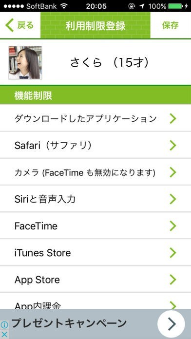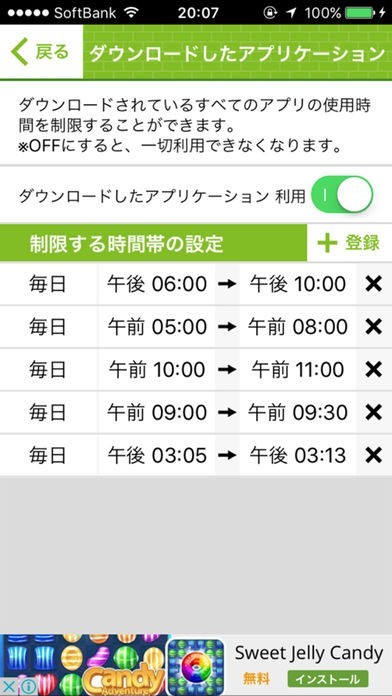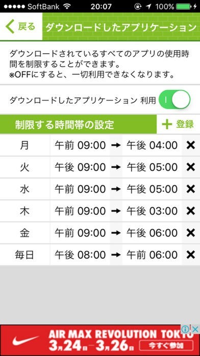 「平日 夜8:00〜朝6:30まではsafari、ゲーム、SNS等の利用を制限」