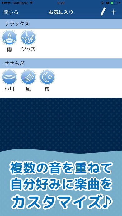 ストレス社会と言われている現代では、寝つきが悪という人が多いと思います。そんな時はリラックスできる音楽でグッスリ眠りたいと思いませんか? このアプリは、そんな人のための快眠音アプリです。癒しの音がなんと43種類もあります。しかも、オルゴールやジャズなどの癒しの音楽だけではなく、雨の音や小鳥の音、電車内の音など自然の音や生活の音なども入っています。リラックスできる音は人それぞれですよね。音の種類が豊富なので、小さいお子様の寝かせつけにおすすめです。好みの音複数ある場合は、音を重ねて自分の好きなようにカスタマイズもできちゃいます。しかも、好きな組み合わせはお気に入りに登録することができるので、とっても便利に使いこなせます。アプリを使えば、今日から快眠生活遅れそうですね。