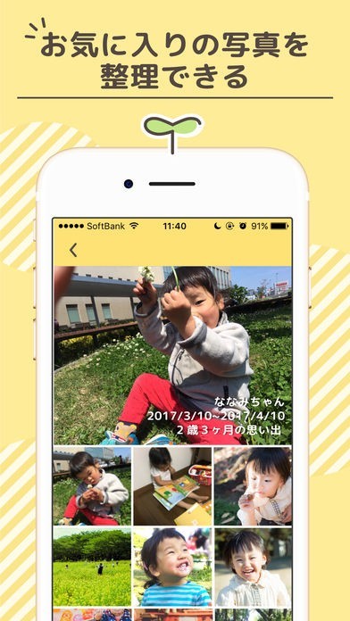 App Storeより引用*ボタンひとつで写真を月齢別に整理!