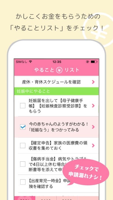 妊娠なうマネー-出産のお金手続き準備アプリのスクリーンショット