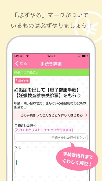 出産までにやるべき事がリスト形式にまとまっており、見落とさない!