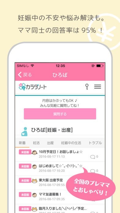 先輩ユーザーの体験談は、同じ経験をした仲間がいると感じることができる重要なツールです。また、体験談を読んでも解決できない悩みがあれば、自ら質問を書き込むことができるのもポイントです。同じ経験をしてきたユーザー達が回答してくれるので、妊娠中の不安を解消するきっかけになります。