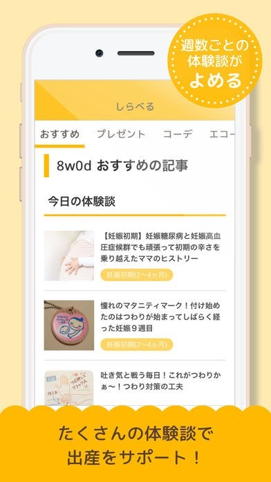 妊娠中のユーザーに役立つコンテンツが満載!
