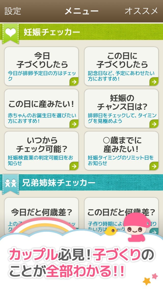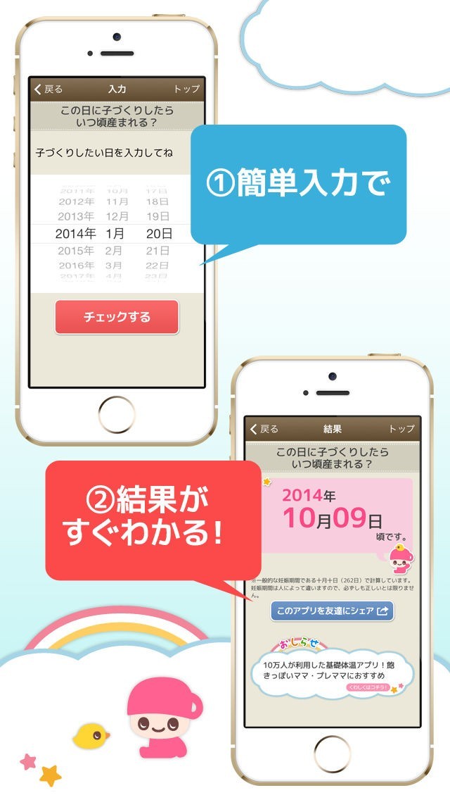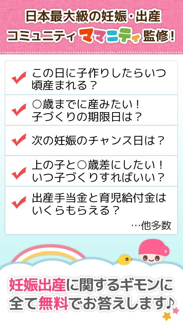 子作りチェッカー 妊娠から出産、排卵日から子どもができやすい時期などを簡単計算のスクリーンショット