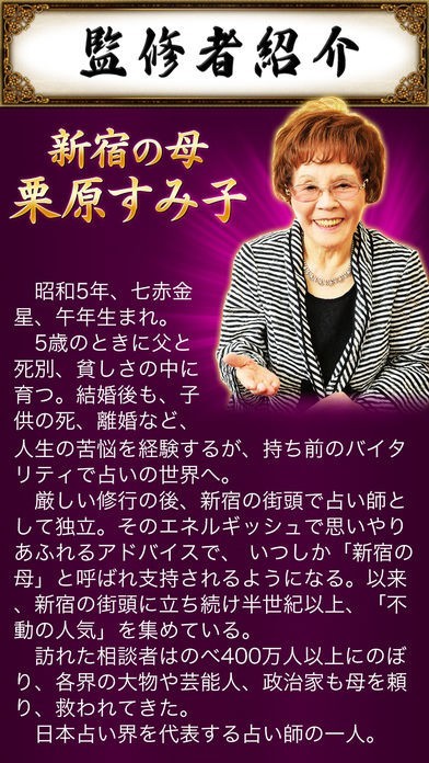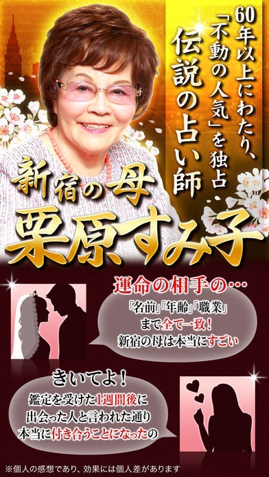スマートフォンで新宿の母栗原すみ子氏の占いを楽しめる!