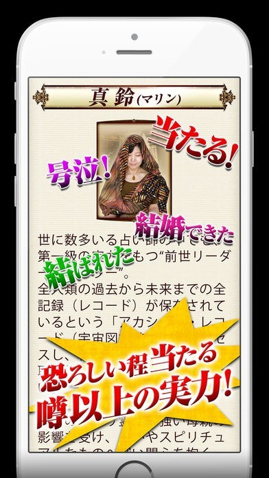 大人気の占い師かつ前世ヒーラーの真鈴による透視占いが受けられるアプリです。日々更新されていく鑑定書をつなぎ合わせれば、あなただけの人生鑑定書が完成するようになっています。