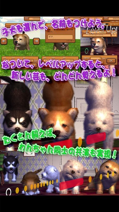 じょうずな演奏を繰り返せば、子犬はどんどんあなたになついて、レベルアップ!