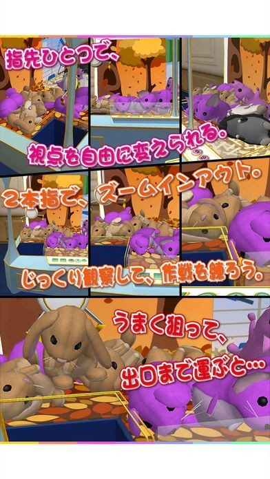 移動ボタンを操作してタイミングを見計らって離すだけです。画面をスワイプすると好きな角度から見ることが可能です。このゲームでクレーンゲームに何度も挑戦してみましょう。