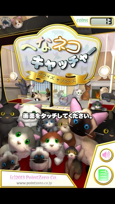 UFOキャッチャーがアプリに。猫のヌイグルミを獲得するゲームアプリ