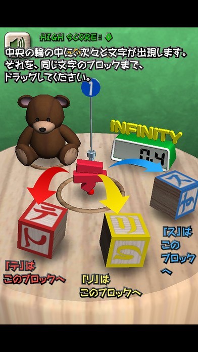 「もじモジ」は「て」と「り」と「す」のブロックを中央に現れる文字と同じものを選んでドラッグするゲームです。 次々と文字が現れるので素早くドラッグしてください。 テンポよくできたら高得点、時間がかかるとゲームオーバーになります。