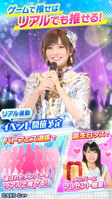 AKB48メンバー(以下「推しメン」)のコーチとなったあなたは、バトルに参加したり、ギルドを結成することが出来ます。