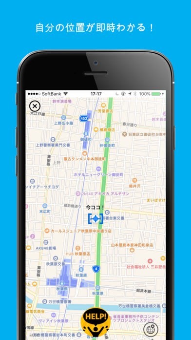 「今ココ!」を使えば登録したSNSを使ってすぐに自分の所在地を知らせることができます。焦っているときでも簡単に地図と住所の情報を送ることができるので安否確認に重宝する機能です。