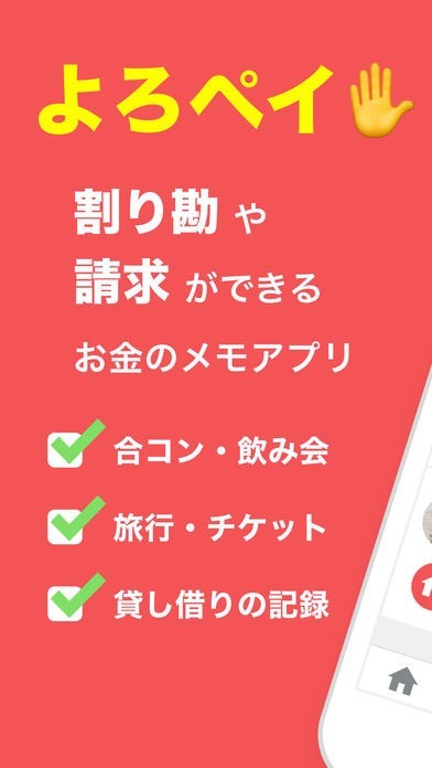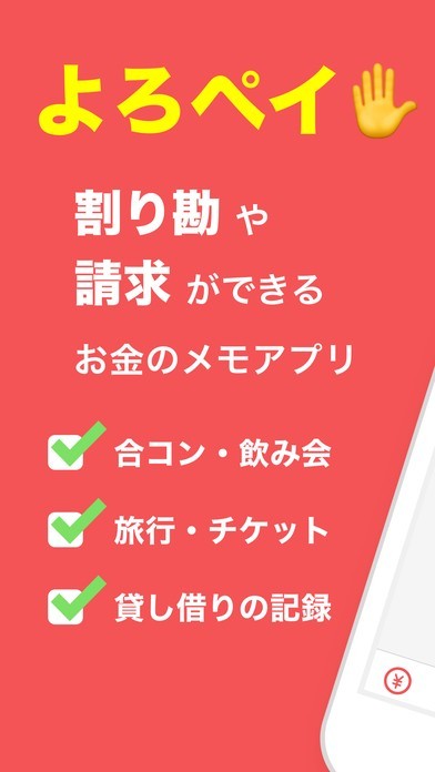 App Storeより引用友だちとスマホでかんたんに割り勘を手助けするメモアプリ「よろペイ」