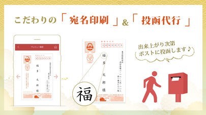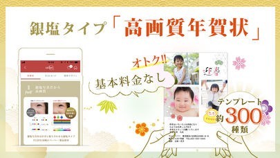 面倒な年賀状作りをスマホ操作で簡単に終わらせることができます。豊富なテンプレートとスタンプでオリジナルデザイン年賀状が誰でも作れます。店売りではない年賀状を送って喜んでもらいましょう。