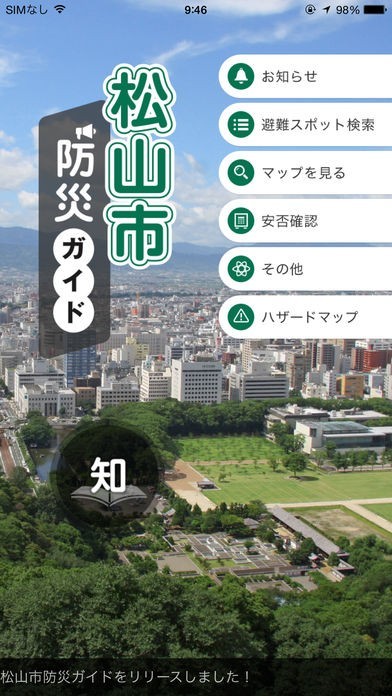 愛媛県が提供する避難所やAED、緊急避難場所などのオープンデータ、ならびに国土地理院が提供するシェープファイルを地図上に表示します。これによって、土砂災害危険箇所のハザードマップも閲覧することができます。