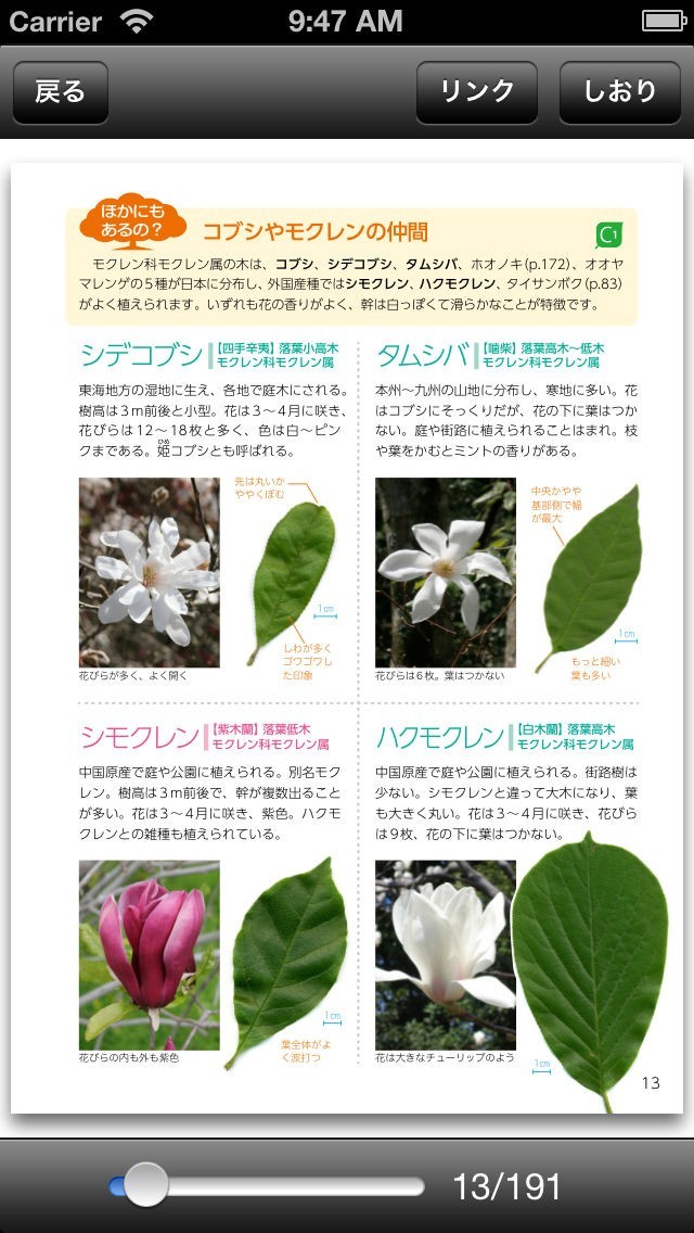 高解像度の植物画像付きだから、外出先でその場で調べられる