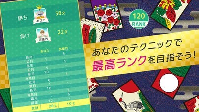 花札の腕前が格付けされるランク機能で最高ランク目指して楽しめる!