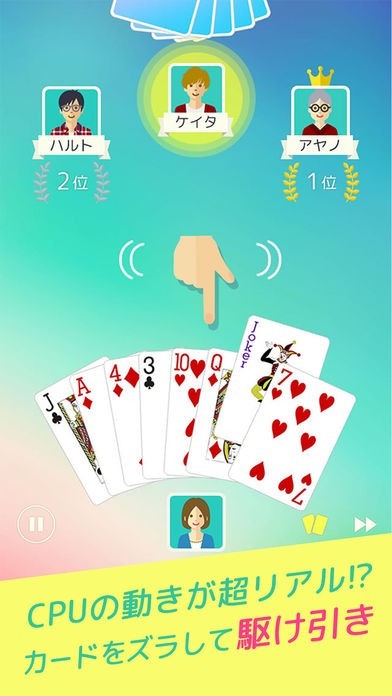 お馴染みのババ抜きをスマートフォンでいつでも手軽に楽しめるのは嬉しいです。