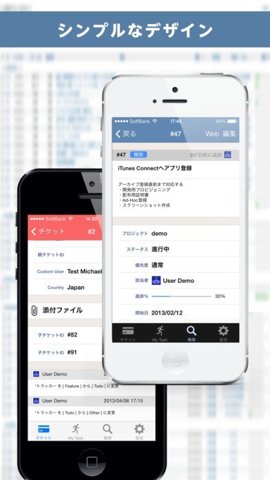 プロジェクト管理システムRedmineユーザー専用ツール。マルチアカウント機能を搭載しており、プロジェクトやチームに応じて複数のアカウントを切り替えながら作業が行えるようになっています。Redmineの独自システムであるチケット登録機能なども充実。チケット登録によってカレンダー表示などが行えるため、スマートフォンからも手軽にタスク管理が実行できるのが特徴です。また、使いやすい検索機能も用意されています。フリーワードを入力での検索はもちろんのこと、チケットID検索やウォッチリスト検索などでシステム内を跨いだ検索を行い、結果を素早く表示してくれます。