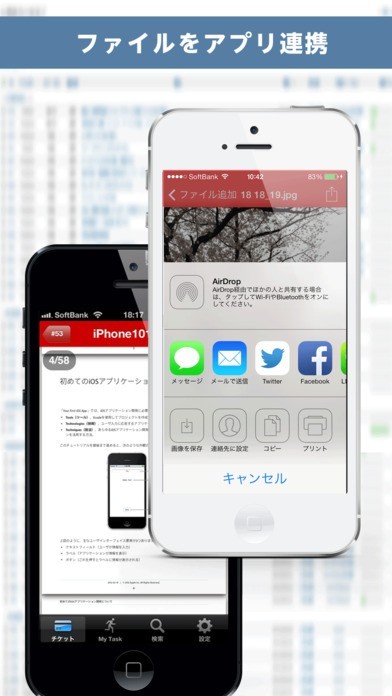 添付ファイル機能があり、相手から受信したファイルは別アプリで表示することができます。連携したEvernoteで保存すると、重要書類の管理に便利です。仕事で使うと仕事の進行度合いが共有でき役立ちます。