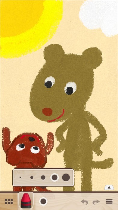アプリでは24色のクレヨンが選択できるほか、こすって色を馴染ませるスポンジなど豊富な表現を可能にする様々なツールが搭載されています。Apple Pencil/3D touchにも対応しており、筆圧によって細かな濃淡が表現できます。