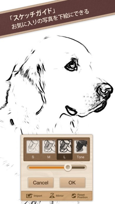 お気に入りの写真を下絵として使用できるスケッチガイド機能を搭載