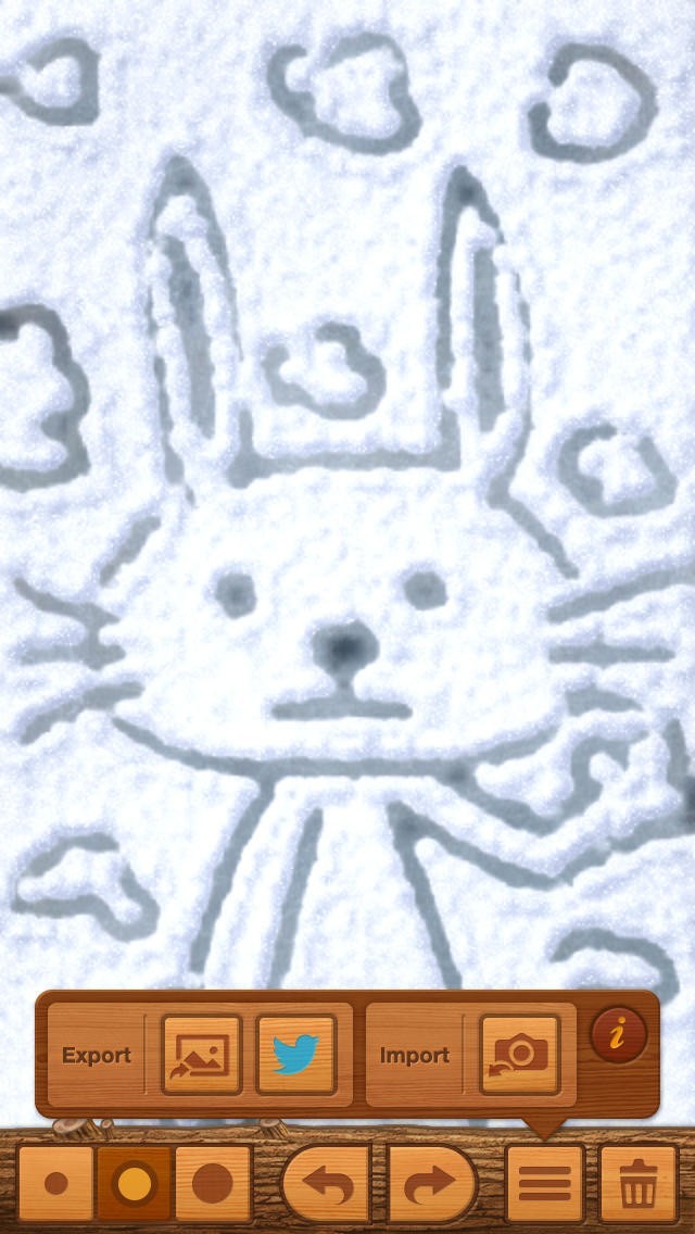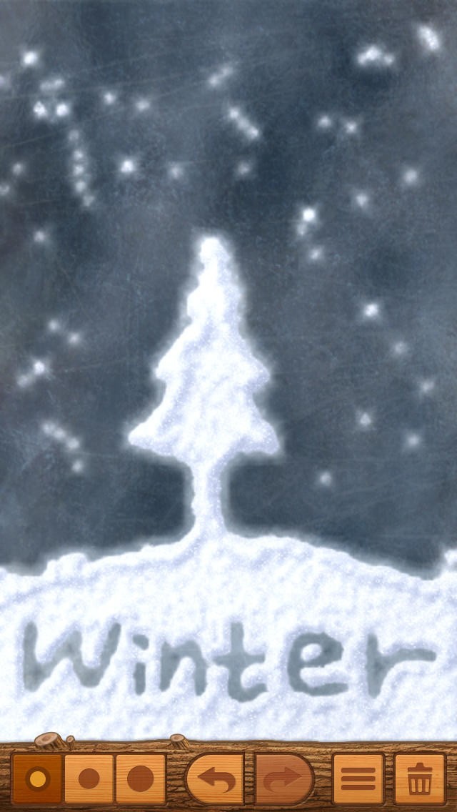 Snow Canvas(スノーキャンバス)は、画面いっぱいに降り積もった雪を使って、自由に落書きを楽しむことができるアプリです。