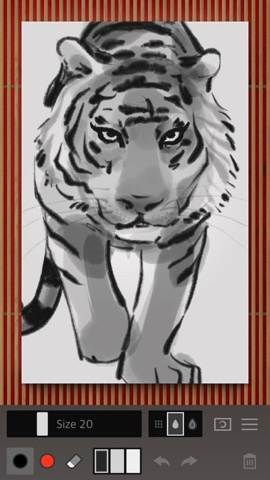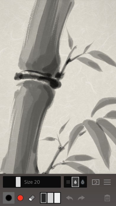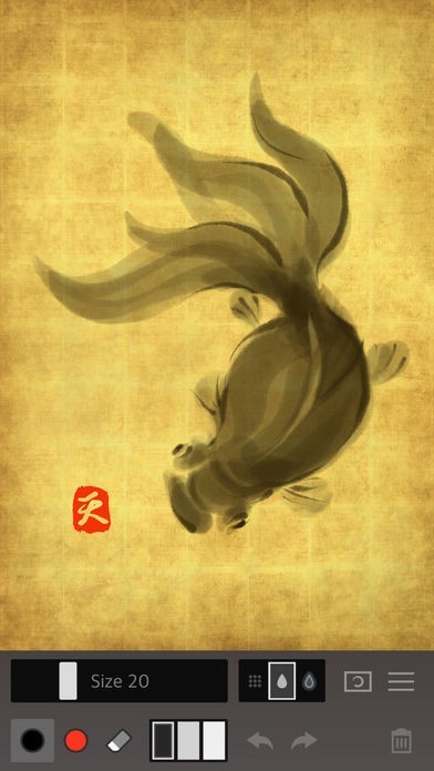 ZenBrush2は、和筆を使って力強さと美しさを表現した線を描いていきます。書き心地は筆に近く、半紙に書いていくようにかすれ具合を再現しながら楽しめます。水墨画を描いていく感覚で絵を描くこともできます。