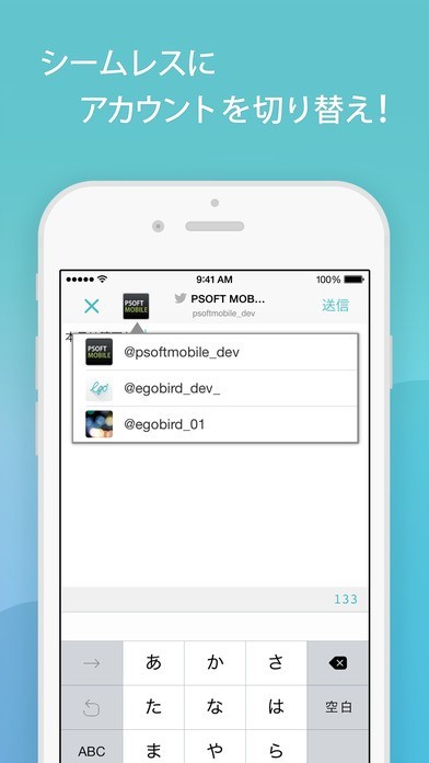 複数のTwitterアカウントを、画面遷移なしで素早く切り替えることができます。例えば、製品やサービスについて検索し、公式アカウントでリツイートしてから個人アカウントで返信するといったことが簡単に行えます。