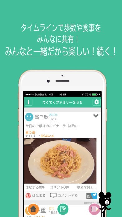 歩数や体重、摂取カロリーなどの記録をみんなで共有!