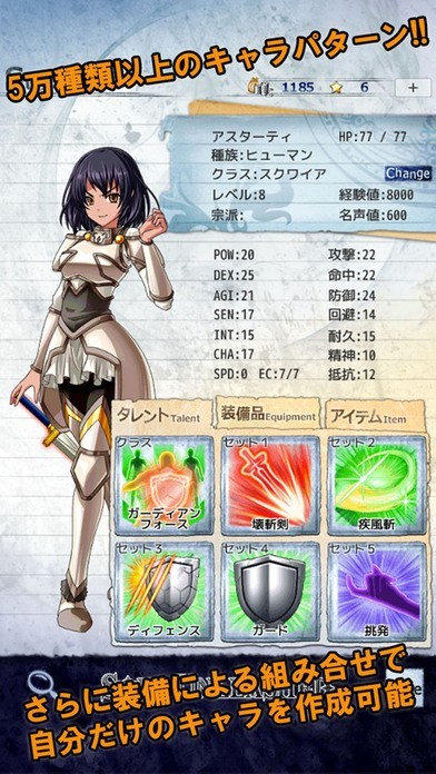 7系統160種類以上のタレント(技や魔法などの総称)を習得し、多彩なキャラクター構築を楽しめます。