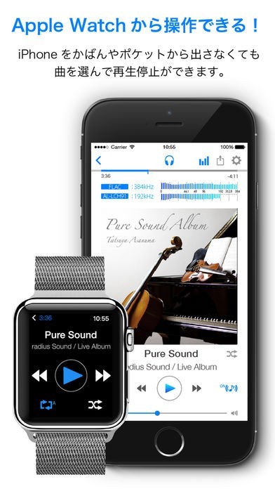 ハイレゾ音源で音楽が楽しめる「ハイレゾ対応 音楽プレイヤー」はシャッフル再生に対応しているスマホアプリで、歌詞を表示出来る特徴があります。「アルバム」や「プレイリスト」で楽曲を管理する事が可能ですし、イコライザー機能で音楽を自由にアレンジ出来るのが機能のメリットでしょう。スマートウォッチと連動しているので、曲の再生や停止もスムーズに行えるようになっています。