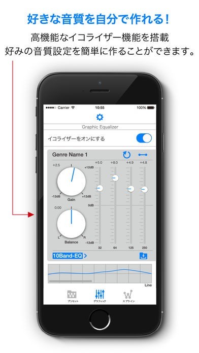 高音質で楽曲が楽しめる!イコライザー機能で音質調整も自由自在!