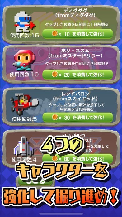 App Storeより引用タップで簡単!地面を掘ると懐かしのあんなキャラやこんなキャラがザクザク出てくる!!