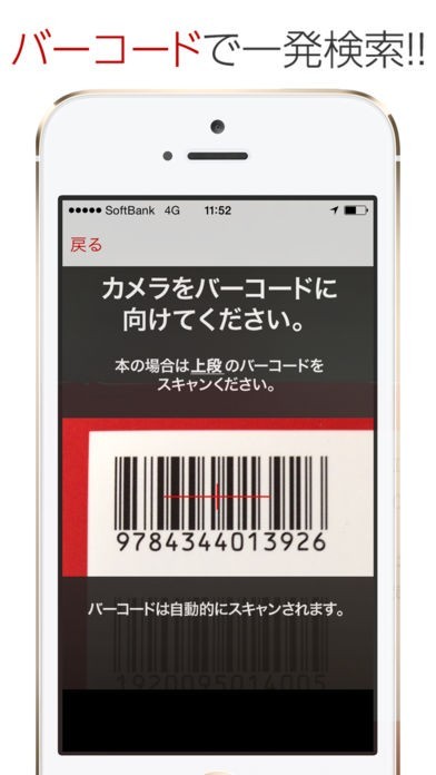バーコードスキャン機能が搭載されているので、アイテムのバーコードに向かってスマートフォンのカメラをかざすことで簡単にアイテムを検索することが出来るようになっています。