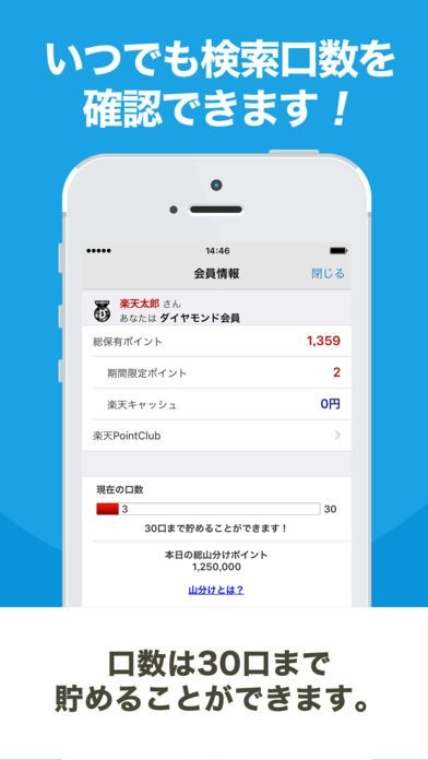 検索の回数によって楽天ポイントの抽選に参加できるようになっている