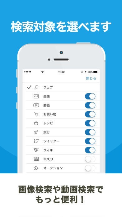検索の対象を選ぶ事も可能になっている