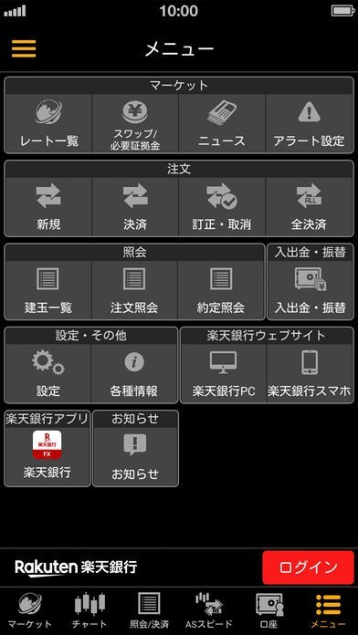 最新の為替レート、マーケット情報、注文・決済などFX取引に必要な機能をいつでもどこでもご利用いただけます。