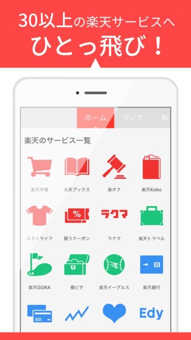 楽天の30種類以上のサービスへ簡単にアクセス可能!