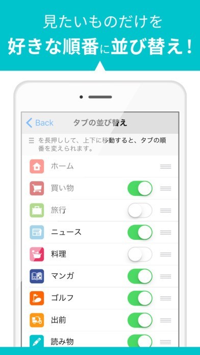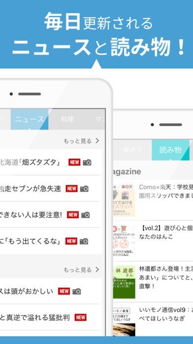 楽天が提供している30以上のサービスが一覧で表示されているので、アイコンをタップするだけですぐにそれぞれのサービスを利用できます。まさに楽天の玄関口となるアプリです。買い物から保険、旅行など日々の生活の全てをこのアプリ一つでまかなうことができます。毎日最新情報と旬な記事が配信されているので読み物としても楽しめます。楽天のキャンペーンやイベント情報もいち早く手に入るので、定期的にチェックしているとお得です。タブの並び替えができるので、良く利用するサービスを上位に表示しておけば管理がしやすいです。複数のサービスに渡って検索できるので、情報量が多くてもすぐに目当ての情報を見つけられます。
