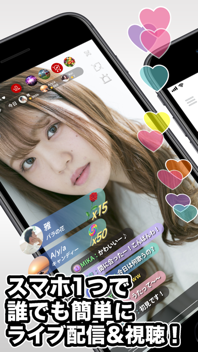 スマホ1台あれば、誰でも簡単に、無料でライブ配信・視聴ができます。