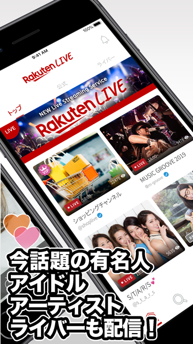 人気アーティスト・アイドルによる個人のライブ配信やRakuten LIVEオリジナル番組。
