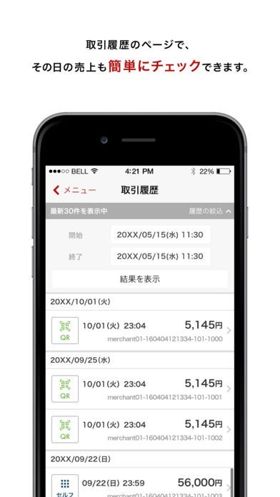 お客様がスマホアプリにクレジットカード情報を登録し、あなたのお店で会計を済ませれば、アプリの取引履歴のページで売り上げ履歴を見ることができ、面倒な手作業での売り上げ計算が不要になります。